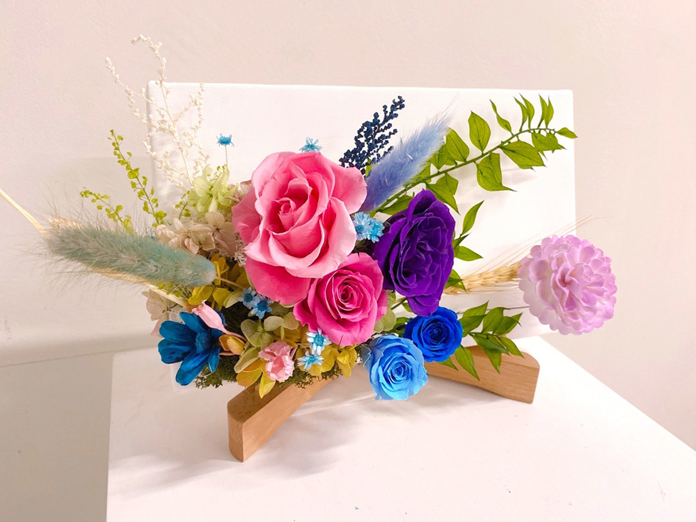 「花草Feifei」以自然、清新的形象為品牌特色, Mandy定期上花市精選的新鮮花葉兒及從日本引進的永生花,營造出舒適愜意又帶有點溫柔浪漫的質感作品。